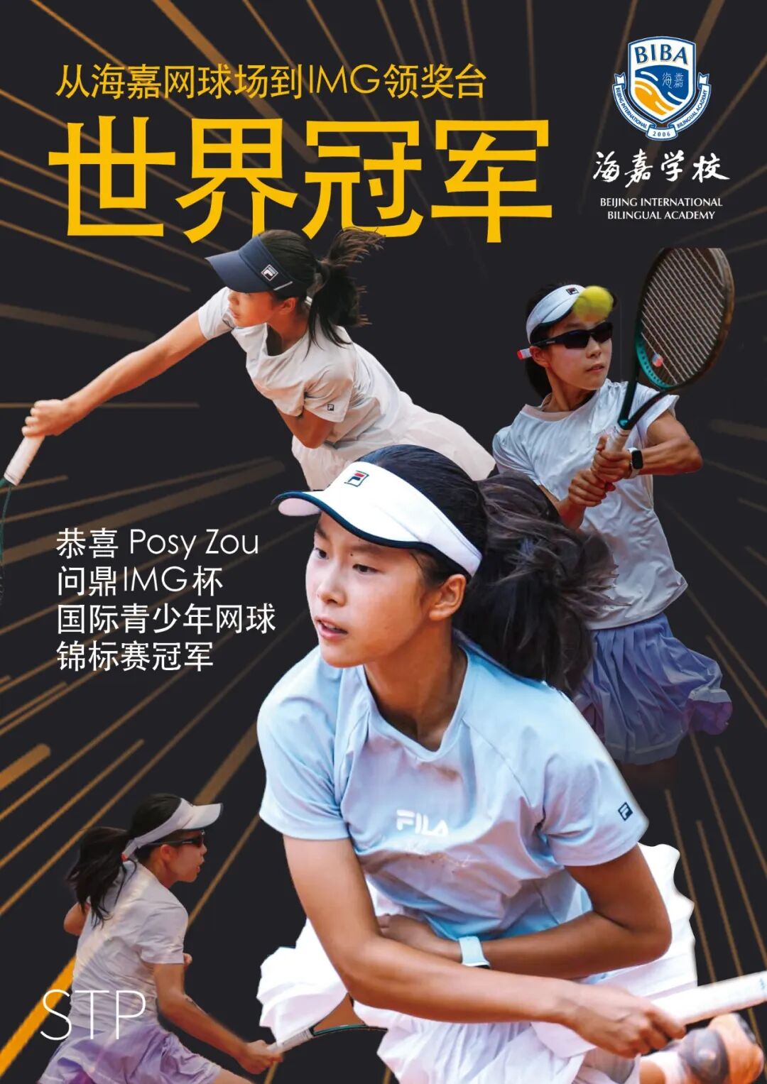 当12岁的Posy Zou在IMG国际网球锦标赛举起U12女单冠军奖杯时,海嘉学校STP双优项目主任Vivienne的手机里正收到家长群刷屏的祝贺消息。