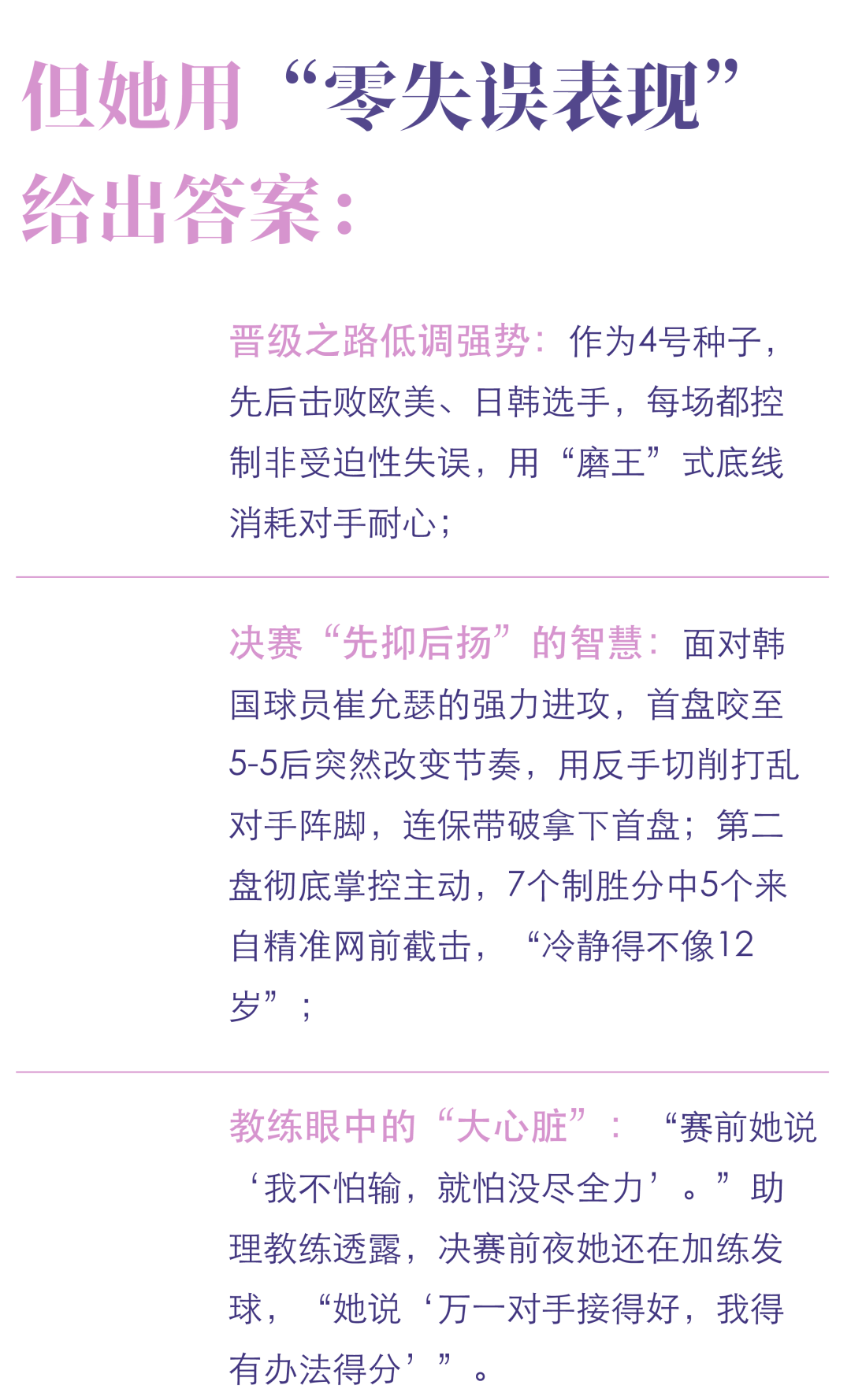 “橘子碗的对手更强,但我准备好了。”采访时她握着冠军奖杯的手很稳,眼神望向远方,“我想看看,自己到底能走多远。”