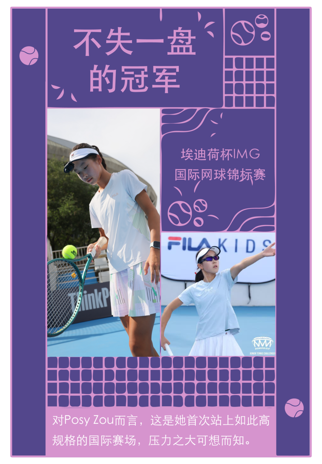 IMG夺冠后,Posy Zou的行程表已排满新目标:即将启程参加橘子碗杯网球赛(与IMG齐名的国际青少年赛事),随后是明年全国青少年锦标赛。